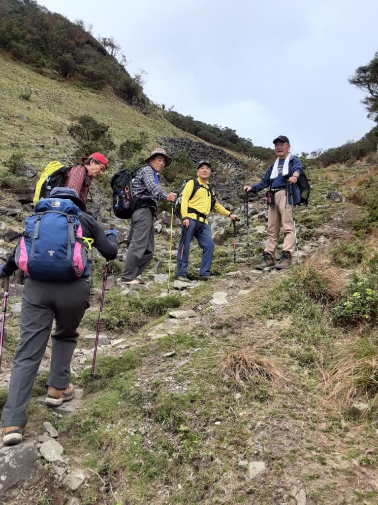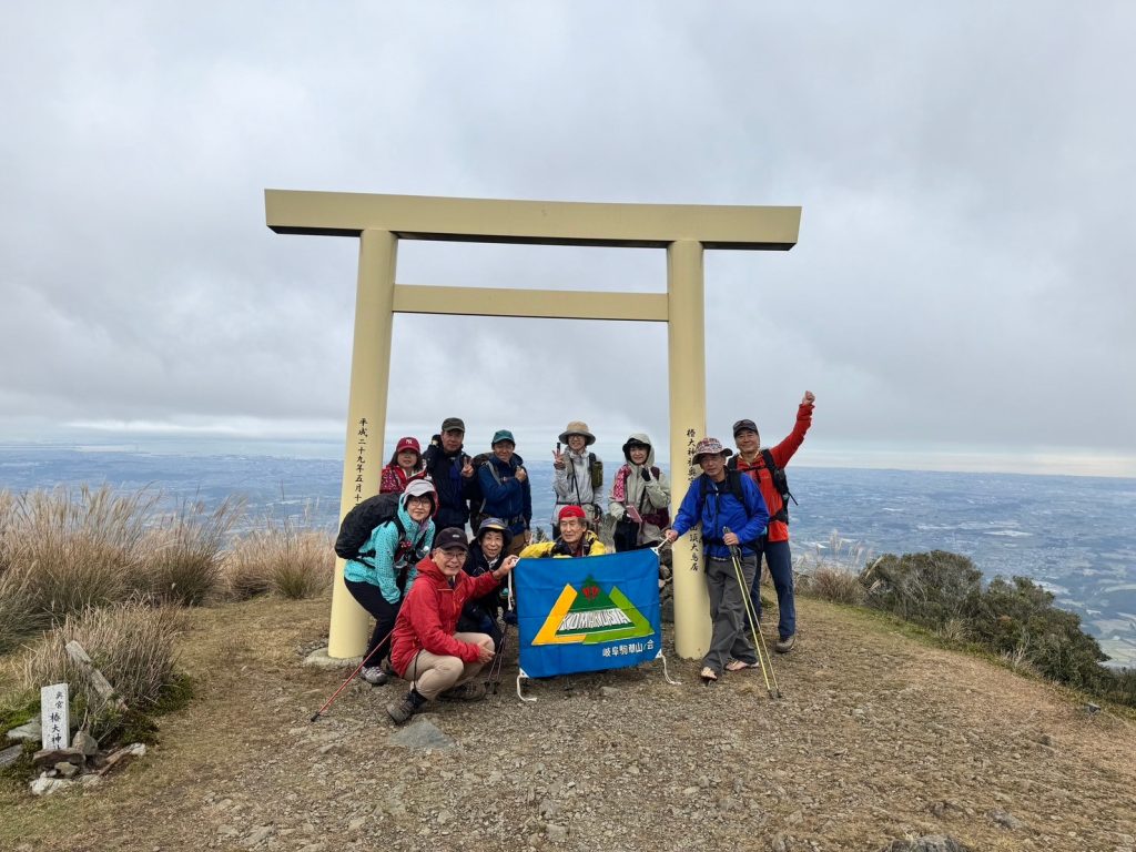 1週間前は天候不良で中止かと思っていたが、その後 予報がほぼ曇りに好転し、決行を判断した。6:30 岐阜県庁を出発。予報通りの曇りで、ちょっと肌寒さを感じる天気であった。長良川右岸の堤防道路を南下し、長島ICより東名阪、新名神と乗り継いで、鈴鹿スマートインターで高速を降り、程なくして椿大神社 第三駐車場(登山者用)に到着した 7:40 。高速道路からは鈴鹿の山並みがくっきりと見え、実施の判断が正しかったと確信した。駐車場は十分なスペースがあり、満車の心配はなさそうであった。駐車場で、本日ゲスト参加の地元三重在住のMさんと合流し、登山支度を整え出発 8:00. 参道を歩いて程なくして神社の立派なトイレがあった。更に参道を歩いて本殿に向かった。参道両脇の杉の大木を見、またMさんから、松下幸之助と椿大社の縁についての話を聞いた。参拝を終え、本殿左の門から出て、林道を登山口へと向かった 8:12。程なくして登山道が始まった8:20。いきなり急登から始まり、ところどころ なだらかな登山道があるものの、結構登りのきつい道を進み、井戸谷避難小屋に到着 9:05。小休止の後、出発 9:19。ここからつづら折れの急登が始まった。途中から見え始めた稜線を目標に、何とか足を前に進めていった。樹林帯を抜けた時、振り返ると、今まで登ってきた井戸谷とその向こうに四日市港、伊勢湾、セントレア、知多半島が一望でき、元気を再充電し稜線に向かって足を進めた。上部は馬酔木のみが育っており、草と苔が覆って遠くから見るとゴルフ場の様に平原が広がっていた。ゲストのMさんから、「入道ヶ岳は台形の形の山なので、登りはきついが、上はなだらか」をいう説明に納得した。平原を歩いて北の頭に到着 10:14。北側に見えるはずの鎌ヶ岳、鎌尾根はちょうど雲に隠れて見えず、その奥の御在所岳のロープウェーの鉄塔が見えるのみであった。しばらく景色を楽しみ出発 10:25。馬酔木のトンネルをくぐりながら、椿大神社奥宮に到着10:26。参拝を済ませ、少し下って鞍部で昼食10:30-11:00 昼食を取り始めて間もなく 小雨。昼食を早々に切り上げ、先を急いだ。少し登り返し、金色の鳥居のある入道ヶ岳山頂に到着11:03. このころには、小雨が降ったりやんだりで、近くの山も雲に隠れていた。四日市方面は明るく日が差しているようであったが、鈴鹿山系はガスがかかってしまった。当初の予報とは異なり残念ではあったが、早々に二本松ルートを下山開始 11:20. 馬酔木の群生地で馬酔木トンネルとして有名なところをどんどん下っていく。小石が多く、滑りやすく歩きにくい。二本松避難小屋に到着 11:50. 小休止し、出発 12:00 周りの木々は馬酔木から杉に代わっていった。ここも結構な急降下であった。登山道がやっと緩やかになり、登山口に到着 12:45。登山口あたりは雨もなく、曇りであった。入道ヶ岳の頂上付近はガスがかかっていた。更に林道を歩いて、駐車場に到着 13:10。 駐車場出発 14:00 鈴鹿PAで休憩 14:20 – 14:35 県庁駐車場 15:15 到着