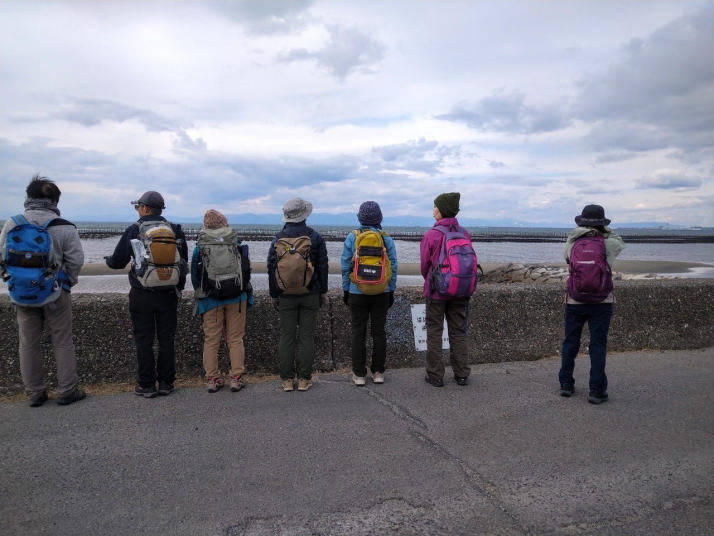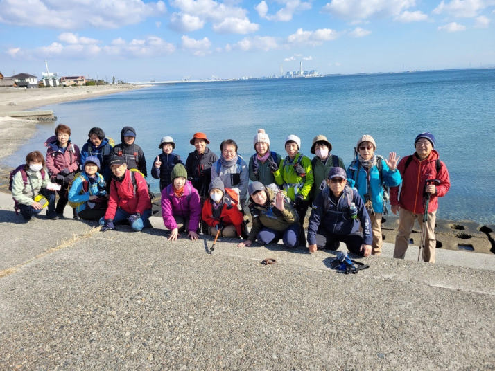 更に道を進めて、産直市場で休憩(12:40-13:00)。ミカンや野菜が売られており、にぎわっていた。店の方からポン菓子をもらって皆さん大満足。更に下って、名鉄内海線の高架をくぐって、知多奥田の町の中に入っていった。進む道の先には伊勢湾が遠くに見えてきて、徐々に近づいてきた。知多半島横断の達成感が沸いてきた。伊勢湾に到着(13:40)(トイレあり)。海を見ながら海岸道路を南に進み、南知多ビーチランドを過ぎたところで左折し、国道247で左折、セブンイレブンの交差点を右折して、知多奥田駅に到着した(14:20)知多奥田駅 14:44発の電車で帰宅、名鉄岐阜 16:20。